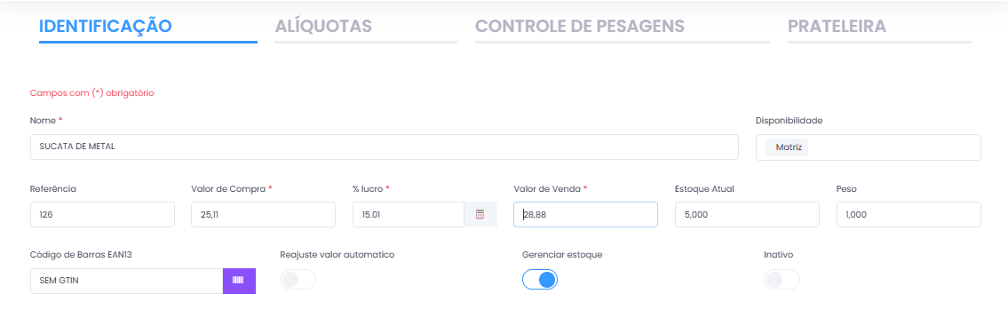 Verifique se a opção está com a opção sim, se não tiver clique em editar e ativa a opção gerenciar estoque