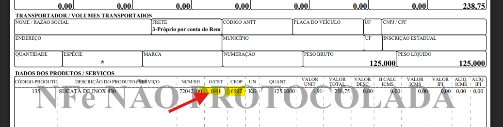 Antes de enviar a nota fiscal para SEFAZ, visualize o DANFE temporário e veja se está com CFOP 6502 e CST 041
