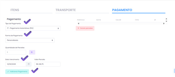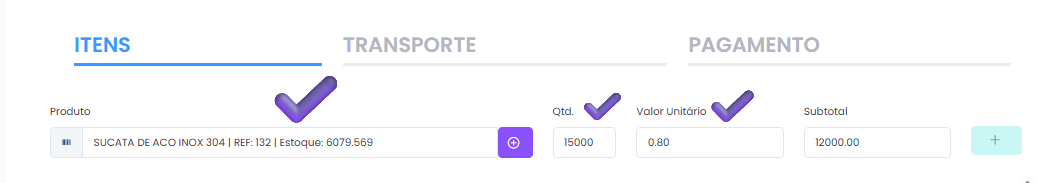 3- Informe o produto, quantidade e valor unitário depois clique no botão